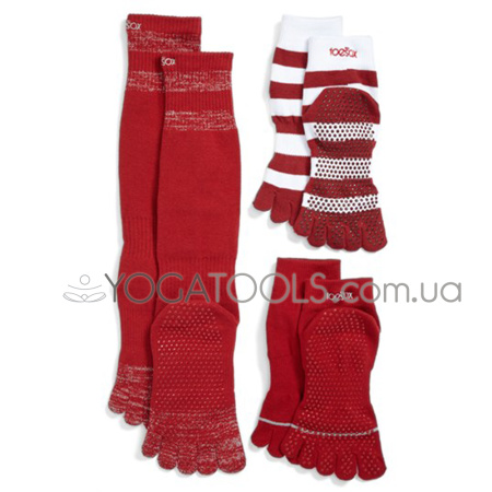 Носки для йоги нескользящие KNEE red, (35-38р.), TOESOX, USA