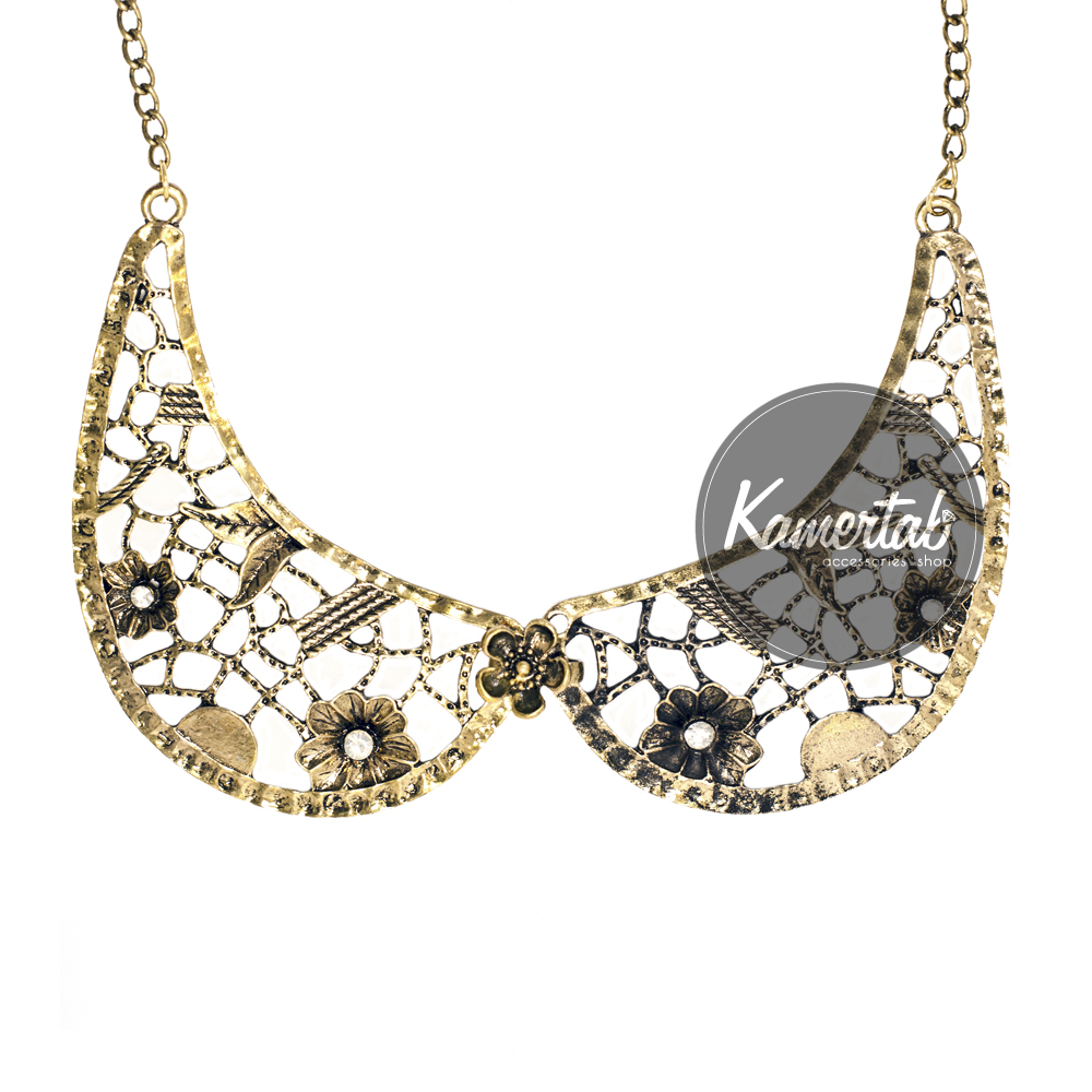 Воротничек цвета античного золота. В данном изделии кружевное плетение металла с добавлением небольших цветочков создает удивительную гармонию
