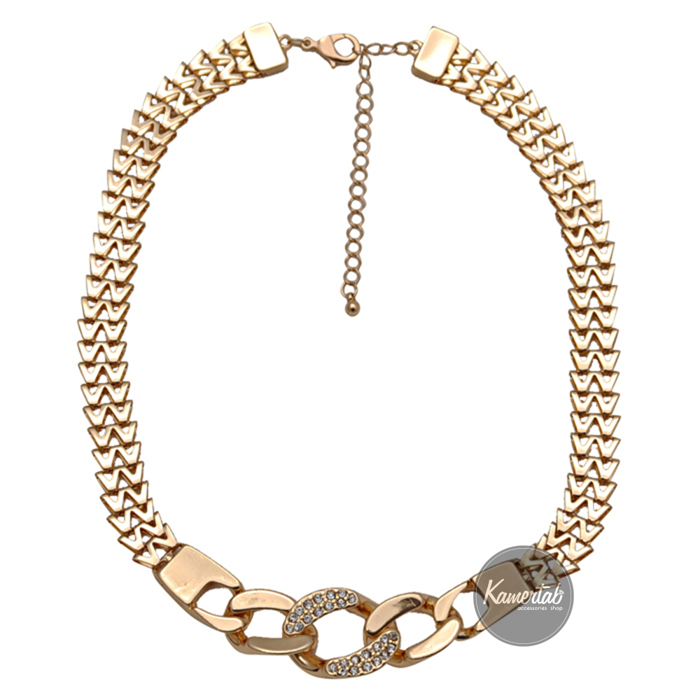 Стильное колье в виде звеньев цепи разного размера, украшены камнями Premium quality |