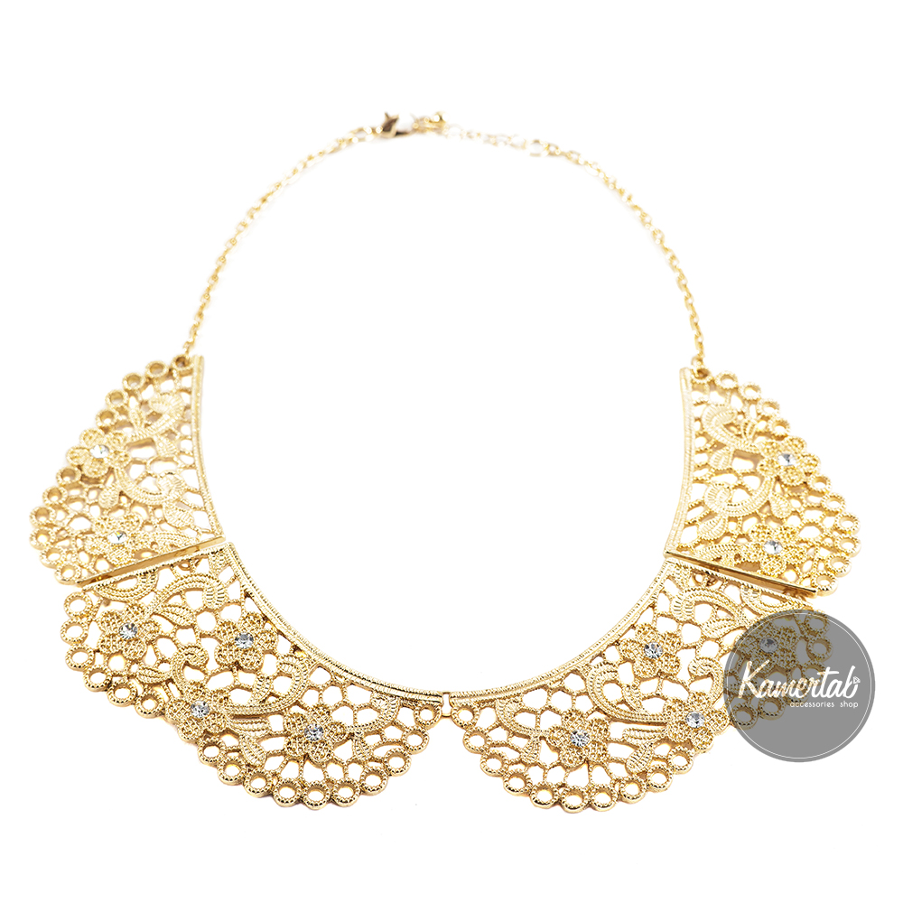 Изысканное колье с ажурным литьем. Цвет - под золото, цветочные узоры. High quality |