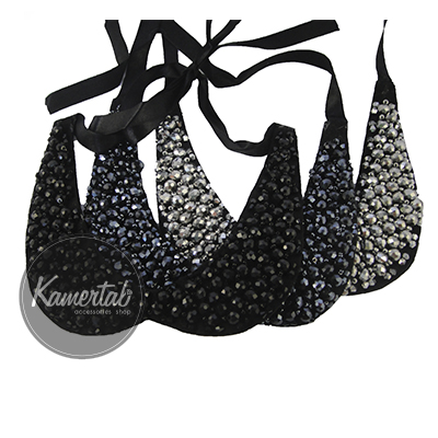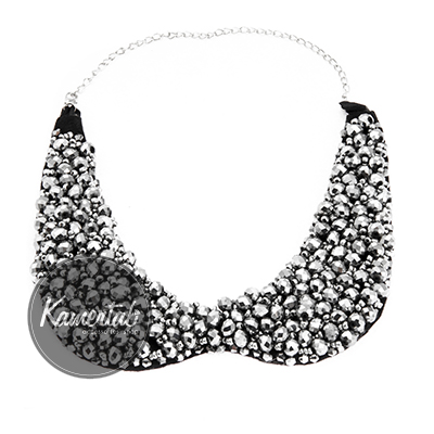 Элегантный воротник, украшен бусами и камнями разных оттенков. Цвет - черный/темно-синий/серебряный.