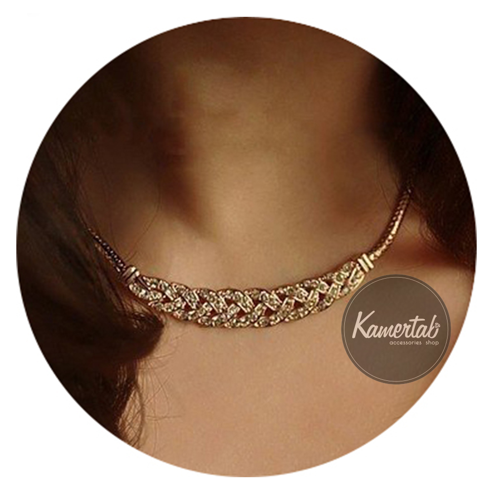 Элегантное колье в форме небольшой косички, украшено камнями |