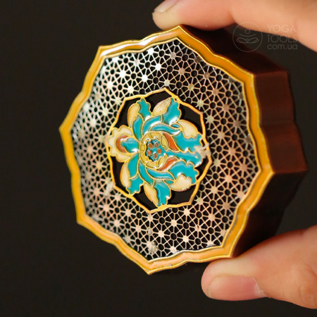 Металічна підставка для ароматичних паличок (спіралі). Виконана у вигляді східної стилізації квітки з жовтою глазуррю. Стоворена для спіральних китайських паличок (дивіться карусель фото) Розмір: 9,5 х 9,5 см Висота: 2,8 см Спіральні палички замовляти тут |