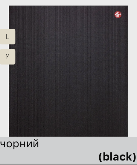 ця картинка показує, що "темно-зелений" колір в наявності в двох розмірах — М (180х61) та Л (200х61).