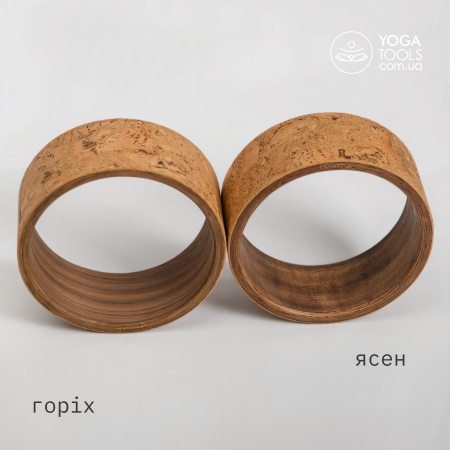 Колесо для йоги Yoga Wood Wheel из дерева американского ореха (цвет темный — натуральный, неокрашенный) и пробки